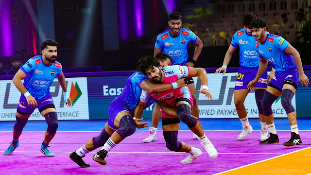जयपुर को सात मैचों में चौथी जीत दिलाने में नितिन (13) और समाधी (12) की अहम भूमिका रही। बंगाल के लिए देवांक (16) ने भी सुपर-10 लगाया और आशीष (6) ने हाई-5 लगाया। बंगाल वापसी कर सकती थी लेकिन समाधी की रेड ने उसका काम तमाम कर सात मैचों में पांचवीं हार को मजबूर किया।